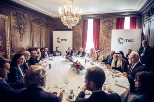 قبل يوم من المقابلة، شارك وزير الخارجية المصري السابق في جلسة مغلقة في قاعة فندقية على هامش مؤتمر ميونيخ، ضمت الرئيس اليمني ووزير الخارجية السعودي والمستشار الدبلوماسي لرئيس الإمارات، إلى جانب مسؤولين آخرين عرب وغربيين.