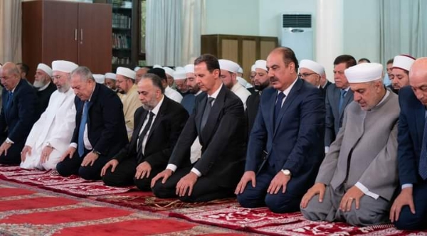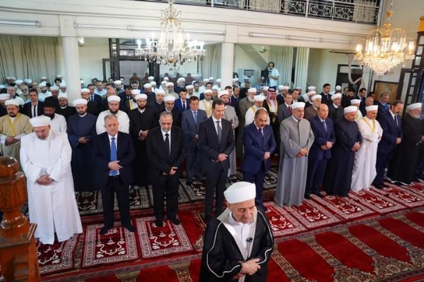 وأدى الصلاة مع الرئيس الأسد وزير الأوقاف وعدد من المسؤولين في الدولة والحزب وعدد من أعضاء مجلس الشعب ومجموعة من علماء الدين الإسلامي وجمهور من المواطنين، مؤتمين بفضيلة الشيخ الدكتور محمد توفيق رمضان البوطي رئيس اتحاد علماء بلاد الشام.