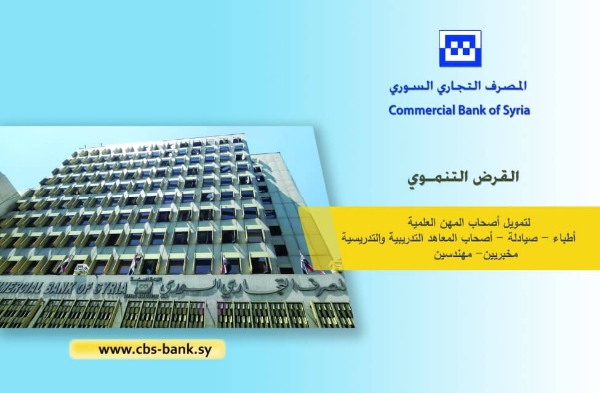 يعلن المصرف التجاري السوري عن إطلاق القرض التنموي لتمويل ذوي المهن العلمية لدعم أنشطتهم وتطوير مشاريعهم. إذ تقرر منح قرض 500 مليون ليرة سورية كحد أقصى لذوي المهن العلمية التالية: الطب ( البشري ــ أطباء الأسنان – الأطباء البيطريين) الصيادلة، التعويضات السنية، أصحاب المختبرات بكافة اختصاصاتهم، المهندسين، أصحاب المعاهد التدريبية والتدريسية. بفائدة عقدية 15% سنوياً ثابتة على الرصيد المتناقص. وحددت التعليمات مدة القرض بعشر سنوات كحد أقصى، يتم تسديد القرض على أقساط دورية (شهرية أو ربع سنوية أو نصف سنوية) على أن يستحق القسط الأول بعد /6/ أشهر من تفعيل القرض، ويمكن التسديد المسبق لقسط أو عدة أقساط في أي فرع من فروع المصرف.