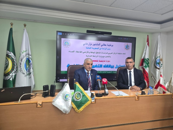 برعاية معالي وزير الزراعة اللبناني الدكتور نزار هاني، وضمن إطار التعاون المشترك نظّم المركز العربي لدراسات المناطق الجافة والأراضي القاحلة "أكساد" دورة تدريبية متخصصة في العاصمة اللبنانية بيروت بعنوان "تحليل بيانات التغيرات المناخية"، بمشاركة 16 متدرباً من كوادر الوزارة. وفي الجلسة الافتتاحية، ألقى سعادة الدكتور نصر الدين العبيد مدير عام منظمة أكساد كلمة شكر فيها الحكومة اللبنانية على الدعم الذي تقدمه لمنظمة اكساد والعمل العربي المشترك، مثنياً على جهود معالي وزير الزراعة في اطار نهجه لتطوير القطاع الزراعي اللبناني، مؤكداً على أن هذه الدورة تأتي في سياق الدور الذي يضطلع به مركز أكساد منذ تأسيسه، كبيت خبرة عربي يُعنى بتحقيق الأهداف التنموية العربية المشتركة، من خلال تهيئة الملاكات المدربة لتحسين أداء الاعمال في اطار الخطط التنموية، من خلال التكيف مع المتغيرات التقنية والتطور العلمي المتسارع، ولفت إلى أن الدورة تنسجم مع الاستراتيجية العربية للأمن المائي (2010–2030) وخطتها التنفيذية، التي أولت اهتماماً بالغاً بظاهرة التغير المناخي وتأثيراتها على الموارد المائية والزراعية في المنطقة العربية، وضرورة التكيف مع تلك التغيرات من خلال تعزيز القدرات الفنية والبحثية. وأشار الدكتور العبيد إلى أن التغير المناخي وشح المياه والأزمات الدولية تفرض تحديات جسيمة على الزراعة والأمن الغذائي في المنطقة العربية، مبرزاً الدور الريادي الذي يقوم به أكساد في إعداد وتنفيذ الاستراتيجية العربية للأمن المائي ومجموعة من المشاريع الرائدة في لبنان، ومنها دراسات الأحواض المائية، وتصميم البحيرات الجبلية، وتقانات حصاد مياه الأمطار. كما شدّد على أن المنطقة العربية من أكثر مناطق العالم تأثراً بندرة الموارد المائية، الأمر الذي يستدعي إدخال التكنولوجيا الحديثة وأدوات الذكاء الاصطناعي في إدارة الموارد المائية، لمواجهة تداعيات التغير المناخي وضمان استدامة التنمية الزراعية. وأكد الدكتور العبيد في كلمته حرص منظمة أكساد على تعزيز التعاون مع وزارة الزراعة اللبنانية من خلال برامج عمل مشتركة تهدف إلى تبادل المعرفة، وتطوير التقنيات، وبناء القدرات الفنية بما يسهم في تحقيق الأمن الغذائي والمائي العربي. وقد ألقى معالي وزير الزراعة اللبناني الدكتور نزار هاني كلمة في الجلسة الافتتاحية، توجّه فيها بالشكر إلى منظمة أكساد على دعمها الفني الدائم لوزارة الزراعة في لبنان، ولاسيما في مجالات استراتيجية هدفت إلى تعزيز الأمن الغذائي الوطني، وأشار معاليه إلى إسهامات أكساد في مساعدة الوزارة تنفيذ الخطة الوطنية للوصول الى الاكتفاء الذاتي في محصول القمح، وتقديم مئات الالاف من غراس الزيتون، إلى جانب دعم قطاع الثروة الحيوانية، وتنفيذ مشاريع البحيرات الجبلية ضمن اطار إدارة الموارد المائية، إضافةً إلى برامج بناء القدرات في مختلف المجالات الزراعية والبحثية. وعملت الوزارة على دراسة الآثار السلبية للتغيرات المناخية على لبنان مما يتطلب اتخاذ إجراءات التكيف مع هذه التغيرات، وتقوم وزارة الزراعة على اعداد خارطة زراعية جديدة للمحاصيل المتأقلمة تأخذ بعين الاعتبار كل التحديات القائمة، والعمل على اعداد قاعدة بيانات للمزارعين التي ستساعد في تأمين الدعم اللازم والصحيح لهم، بما يحقق الامن المائي والغذائي للجمهورية اللبنانية. وتهدف هذه الدورة إلى رفع كفاءة الكوادر الفنية اللبنانية في مجال تحليل البيانات المناخية، من خلال التدريب على استخدام أدوات ومنصات حديثة مثل RICCAR وCORDEX و NetCDF، وإعداد وتحليل البيانات المناخية لتقييم تأثير التغير المناخي على الموارد المائية والزراعية.