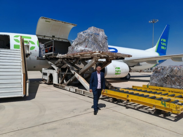 وصلت إلى مطار دمشق الدولي اليوم أول طائرة شحن تجارية من دولة الإمارات العربية المتحدة، (سوليتير)، بعد انقطاع دام أكثر من 15 عامًا من الامارات، والطائرة محملة ب 20 طن من البضائع التجارية المتنوعة، لزوم احتياجات السوق السورية. المدير العام لشركة بلا حدود للشحن والتخليص الجمركي حسين سكران، أعرب عن شكره إلى إدارة الطيران المدني، وإدارة مطار دمشق الدولي وهيئة المنافذ البرية والبحرية على التسهيلات المقدمة لطائرة الشحن من دخولها المطار حتى تفريغ الحمولة.